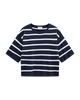 Pullover from Freequent in a soft material with a striped pattern. The pullover has a simple silhouette with a rounded neckline, ribbing and short, wide sleeves with drop shoulders that highlight the loose fit.