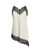 A feminine long camisole top from Freequent in smooth woven sateen with a soft sheen, cut on the bias to create a fluid drape and and a naturally flattering silhouette. The design features an asymmetric hem and delicate lace trim at the neckline and hem, adding a refined and lingerie-inspired touch. Adjustable straps allow a personalised fit.