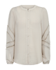 Blouse from Freequent in a light material. The blouse has long balloon sleeves with elasticated cuffs and cutout lace details, a front button fastening, a rounded neckline and a regular fit.