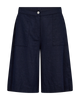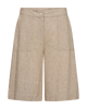 Shorts from Freequent in a linen material. The shorts have a simple silhouette with wide knee-length legs, front and back pockets, utility references, zip and button fastening as well as an elasticated waistband.