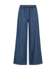 Pants from Freequent in a soft denim material. The pants are simple in their design with an elasticated waistband and drawstring, side pockets as well as wide legs for a casual look.