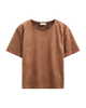 Blouse from Freequent in a soft and luxurious imitation suede material that provides an elegant look and a comfortable feel. The blouse has a simple silhouette with a rounded neckline and short sleeves with drop shoulders that highlight the loose fit.